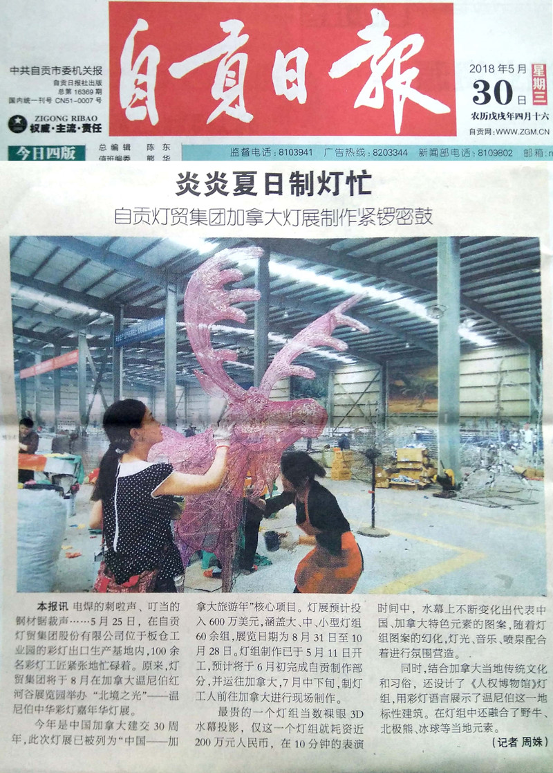 “北境之光——溫尼伯中華彩燈嘉年華”是“2018中加旅游年”的重頭戲,也是“中國-加拿大旅游年”核心項(xiàng)目,本次燈展得到自貢市委、市政府、自流井區(qū)委、區(qū)政府、自貢文廣新局、市商務(wù)局、自貢文旅投集團(tuán)的高度重視和關(guān)心。自貢日報(bào)記者專程來到燈貿(mào)集團(tuán)對本次燈展進(jìn)行了專訪。