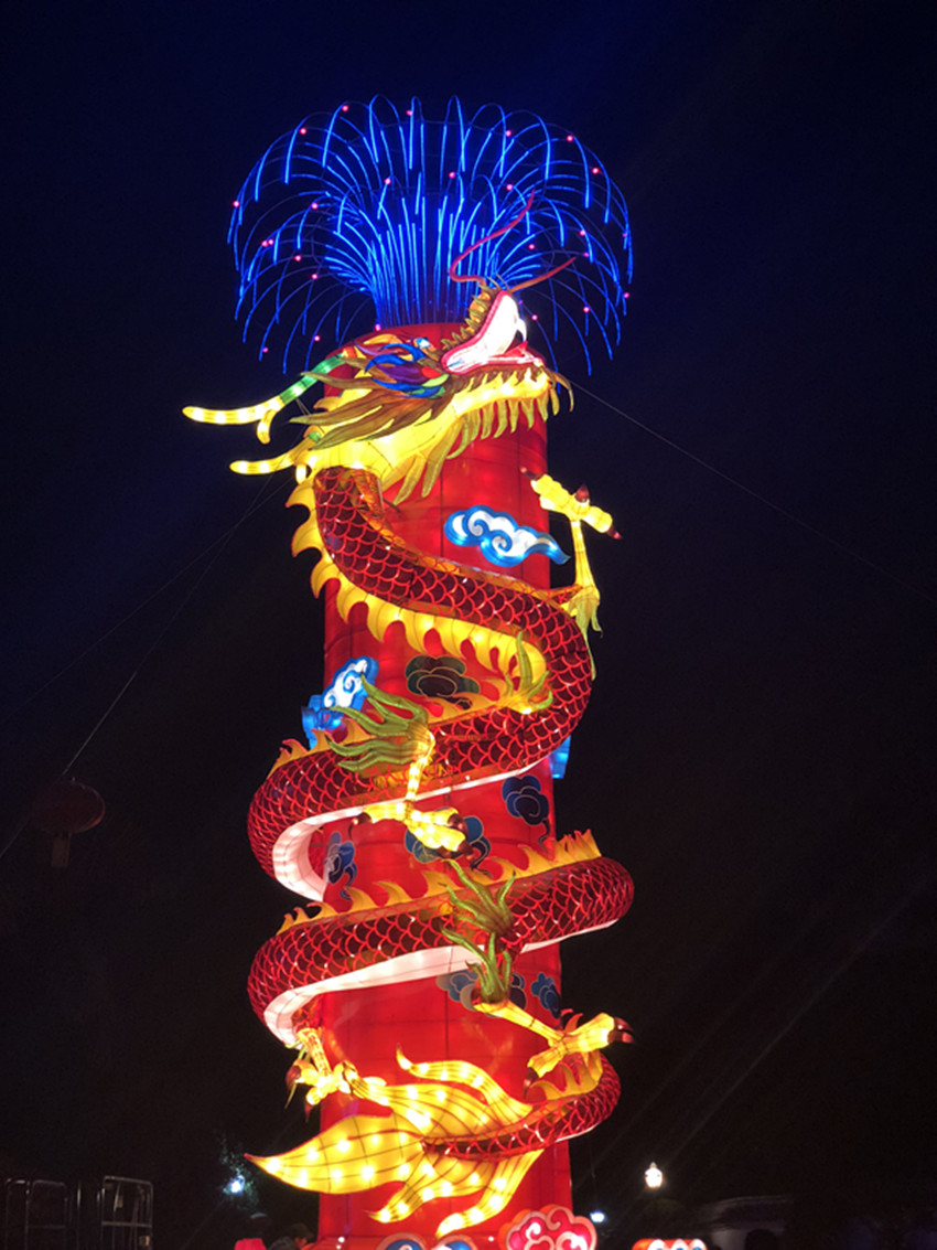 16米高的《龍柱禮花》,用中國(guó)傳統(tǒng)瑞獸龍為設(shè)計(jì)主題,繞柱而上,造型獨(dú)特,寓意鵬程萬里。