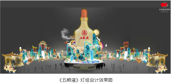 千年悠悠酒香,百年五糧精華。自貢燈貿(mào)集團承制的大型場景式燈組《五糧液》,主燈采用第八代五糧液酒瓶運用自貢彩燈傳統(tǒng)工藝捆扎而成巨型五糧液,輔以仙山、仙境、巨龍騰越氛圍闡釋五糧傳奇,杯酒時光,百年味道。周邊群燈組展示封存在時光中的“活窖池”--利川永、張萬和、劉鼎興、天賜福、聽月樓、全恒昌等八家明代釀酒作坊,歷史悠久的古窖池群講述著傳承幾百年的五糧液釀酒工藝,折射幾千年氤氳酒香的中國酒歷史和酒文化。歲月悠悠,五糧芳香的故事將不停地續(xù)寫,在未來再創(chuàng)輝煌,歷久彌香,延綿不斷地傳承這千古佳釀。