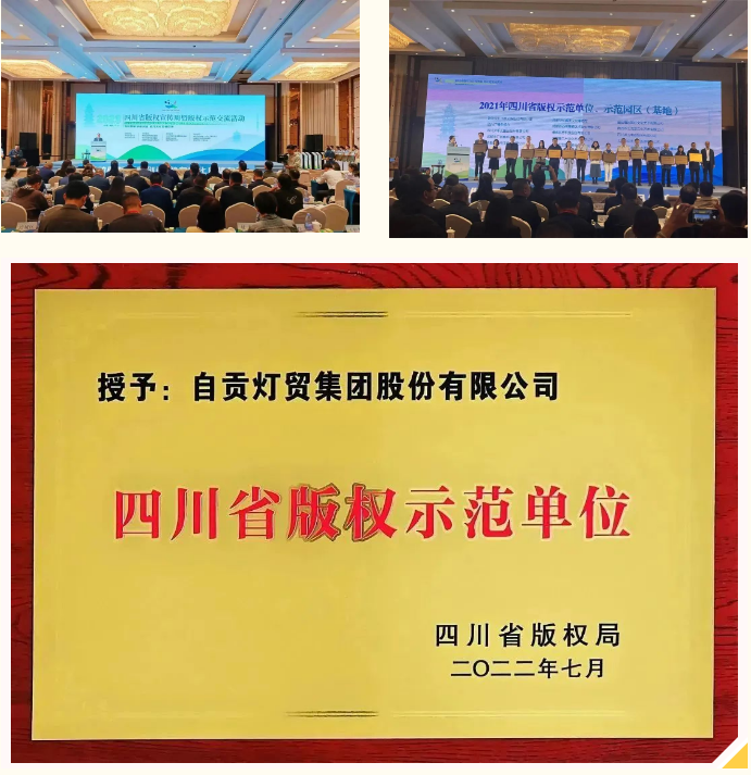 在第23個(gè)世界知識(shí)產(chǎn)權(quán)日來臨之際,由中國版權(quán)協(xié)會(huì)、四川省委宣傳部版權(quán)局主辦,綿陽市委宣傳部承辦的“四川省2023版權(quán)宣傳周暨版權(quán)示范交流活動(dòng)”于2023年4月25日在綿陽舉行,活動(dòng)以“推動(dòng)版權(quán)創(chuàng)新創(chuàng)造 助力文化自信自強(qiáng)”為主題,以線上線下聯(lián)動(dòng)方式同步推出。活動(dòng)當(dāng)天,省版權(quán)局為2021至2022國家級(jí)、省級(jí)版權(quán)示范單位和示范園區(qū)(基地)授牌。自貢燈貿(mào)集團(tuán)股份有限公司參加了活動(dòng),并獲頒“四川省版權(quán)示范單位”榮譽(yù)稱號(hào)。